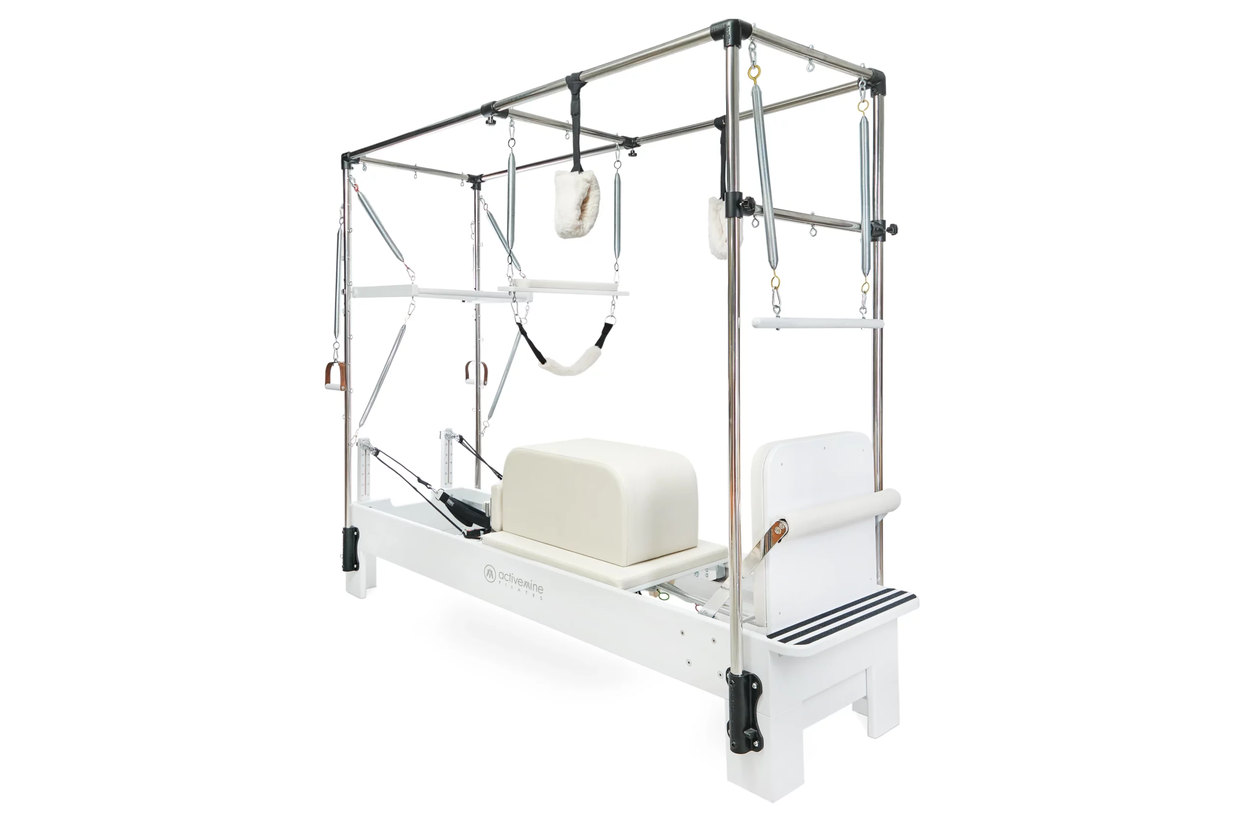 Combo Cadillac, easily used in each mode and in versatility, can be made with short and long frame measurements. It allows all exercise sets to be done in the right mechanic’s thanks to its double moving bars. It’s consisted of Combo Cadillac, Reformer and Cadillac combination. This equipment, allowing endless motion sets has a trapeze made out of complete chrome. Thanks to that, it provides durable use.