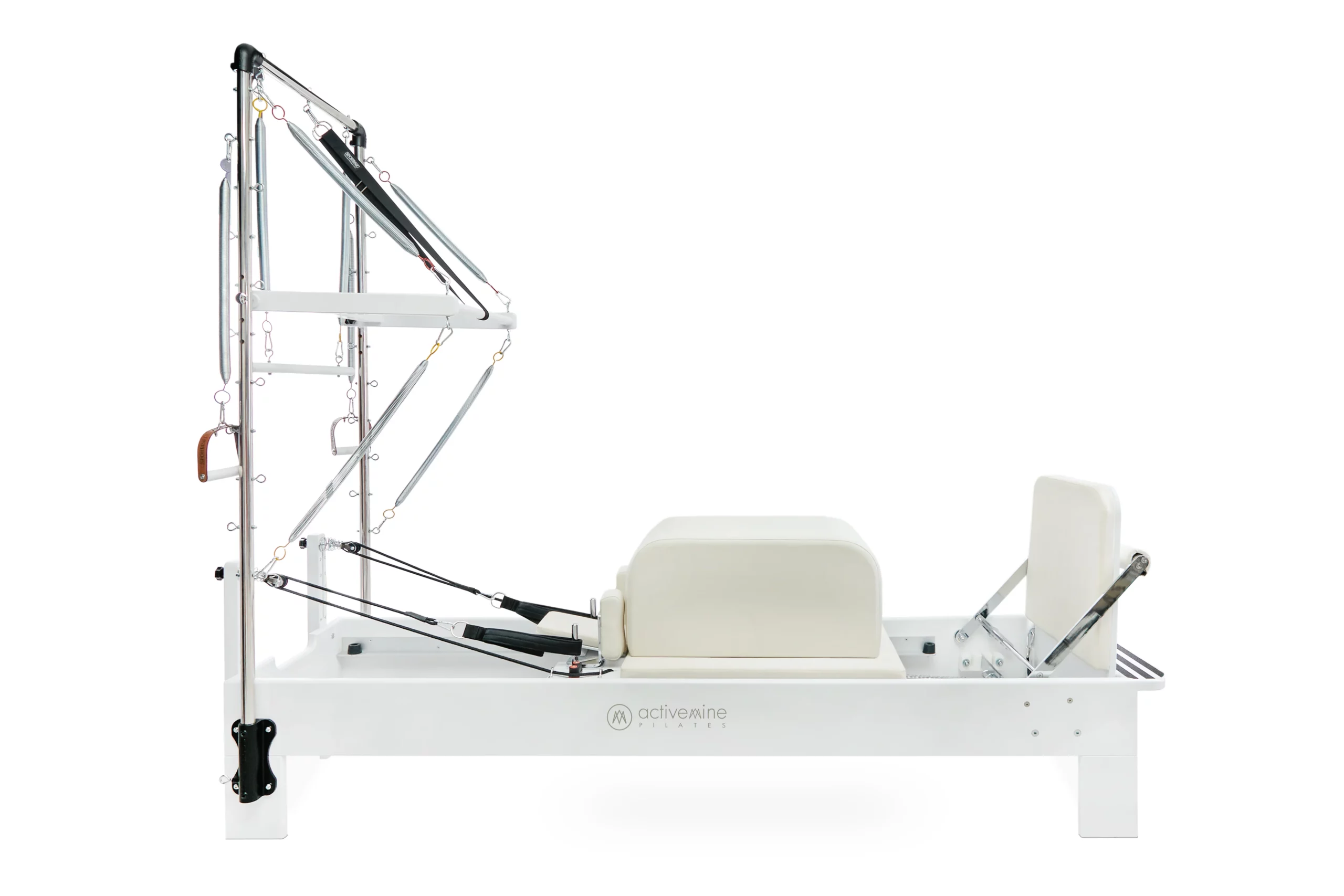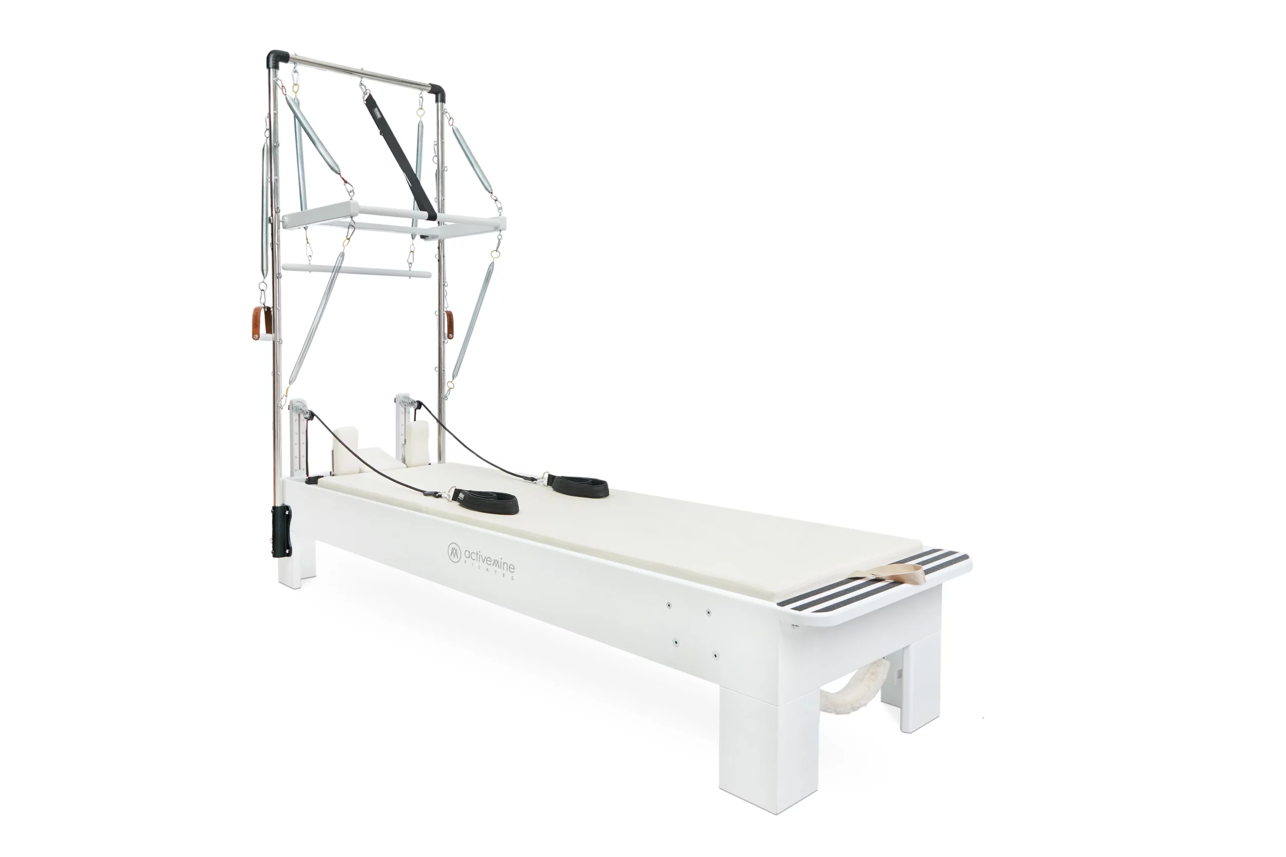 Tower Reformer, consisted of Semi- Cadillac combination, upgrades exercise system and series. It’s also produced from original hornbeam wood same as Reformer equipment. All extra handles and equipments given together with Tower Reformer are also made from hornbeam wood. Thanks to its rustproof chrome pipes, pipes are durable and antibacterial. Our equipment that can be quickly turned from Reformer to Tower is designed as simple and multi-functional for its users. It can be upgraded to Combo Cadillac afterwards and it’s an ideal equipment for different mode usages.