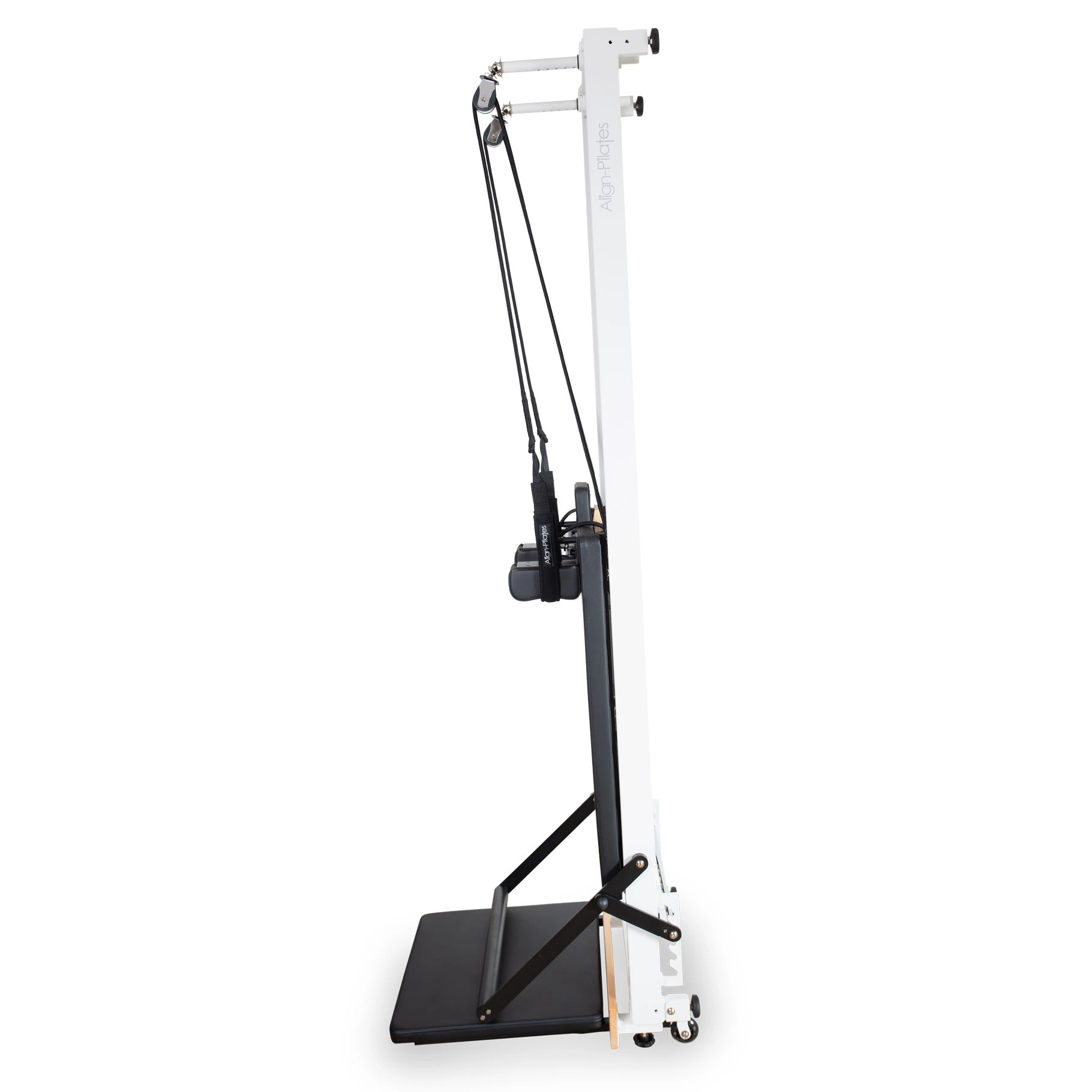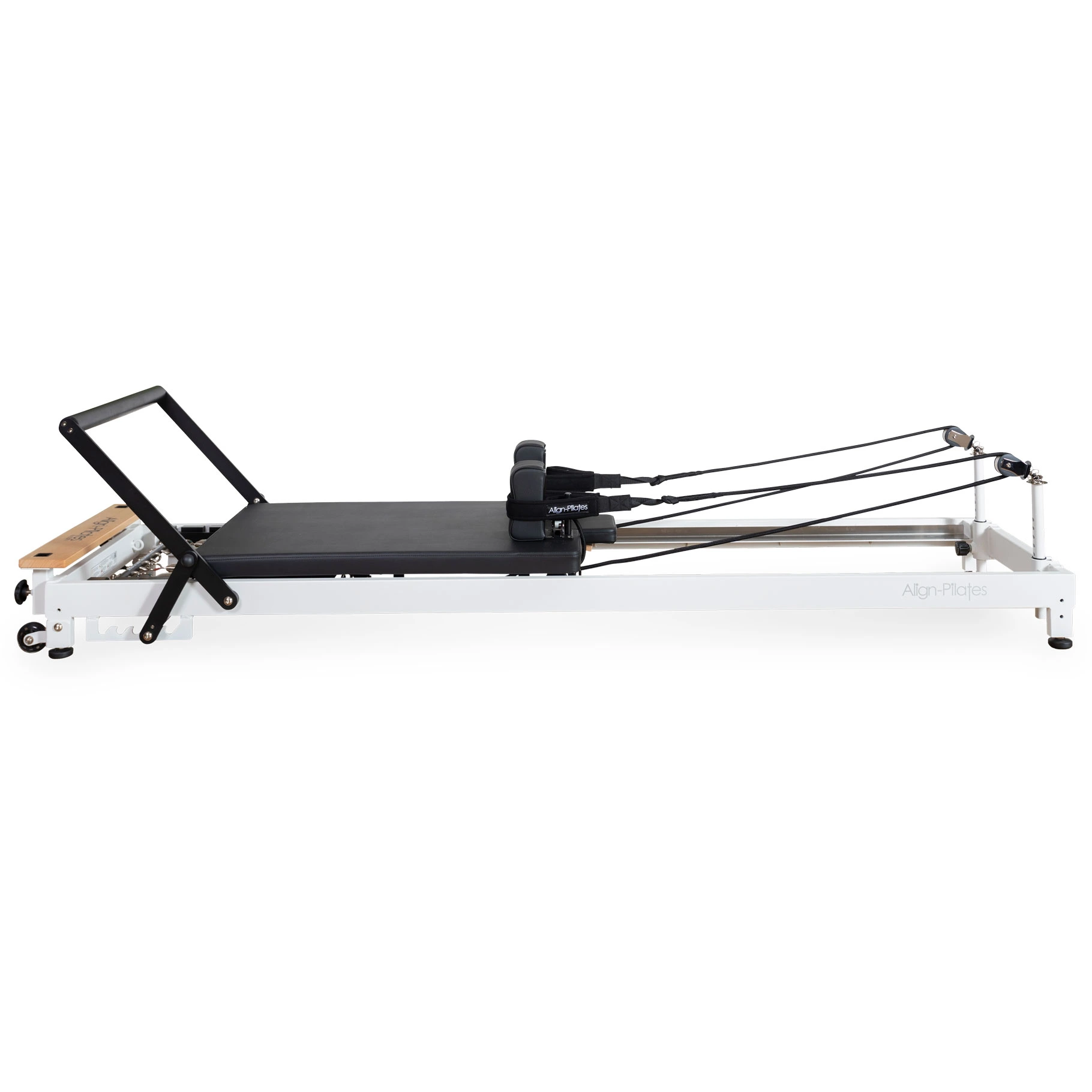 The R8 stands for Retro (8 wheel) as the Reformer has been designed to replicate many features of Joseph Pilates’s original “classic Reformers”. This includes the carriage and foot bar distances, carriage dimensions, spring bar positions, foot bar height, and Reformer height. Whilst the R8-Pro uses height-adjustable rope risers and our Silent Ropes instead of leather straps, the design ensures the pulley position closely resembles that of a classic machine.