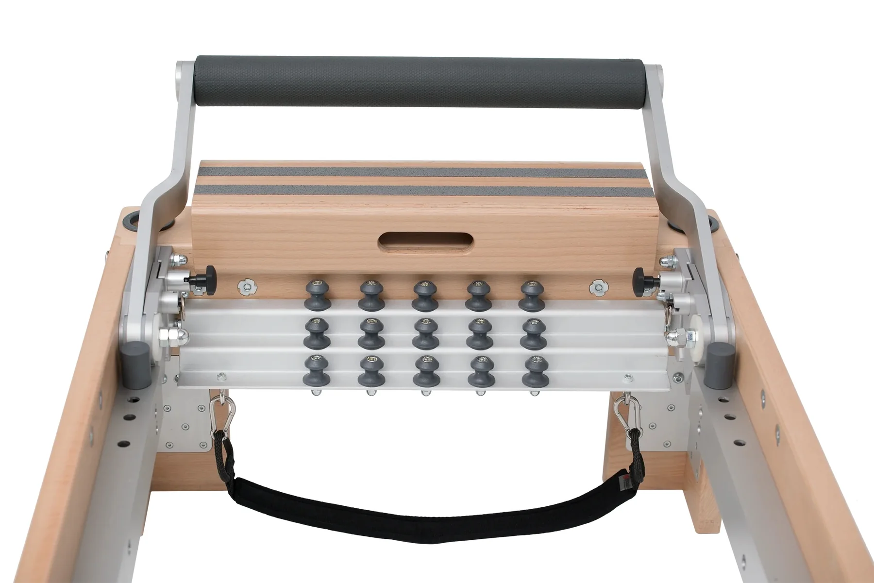With the largest carriage cushion and the longest track in the industry, the BASI Systems’ Combo apparatus offers unprecedented comfort and range of motion. Use it as a Reformer, Reformer with Tower or convert it to a Cadillac for full trapeze functionality and ultimate flexibility in spring positioning. The Reformer Combo comes with four prepared ports to easily accommodate the F2 System upgrade. Extension legs offer the height option to best suit your space and training style.