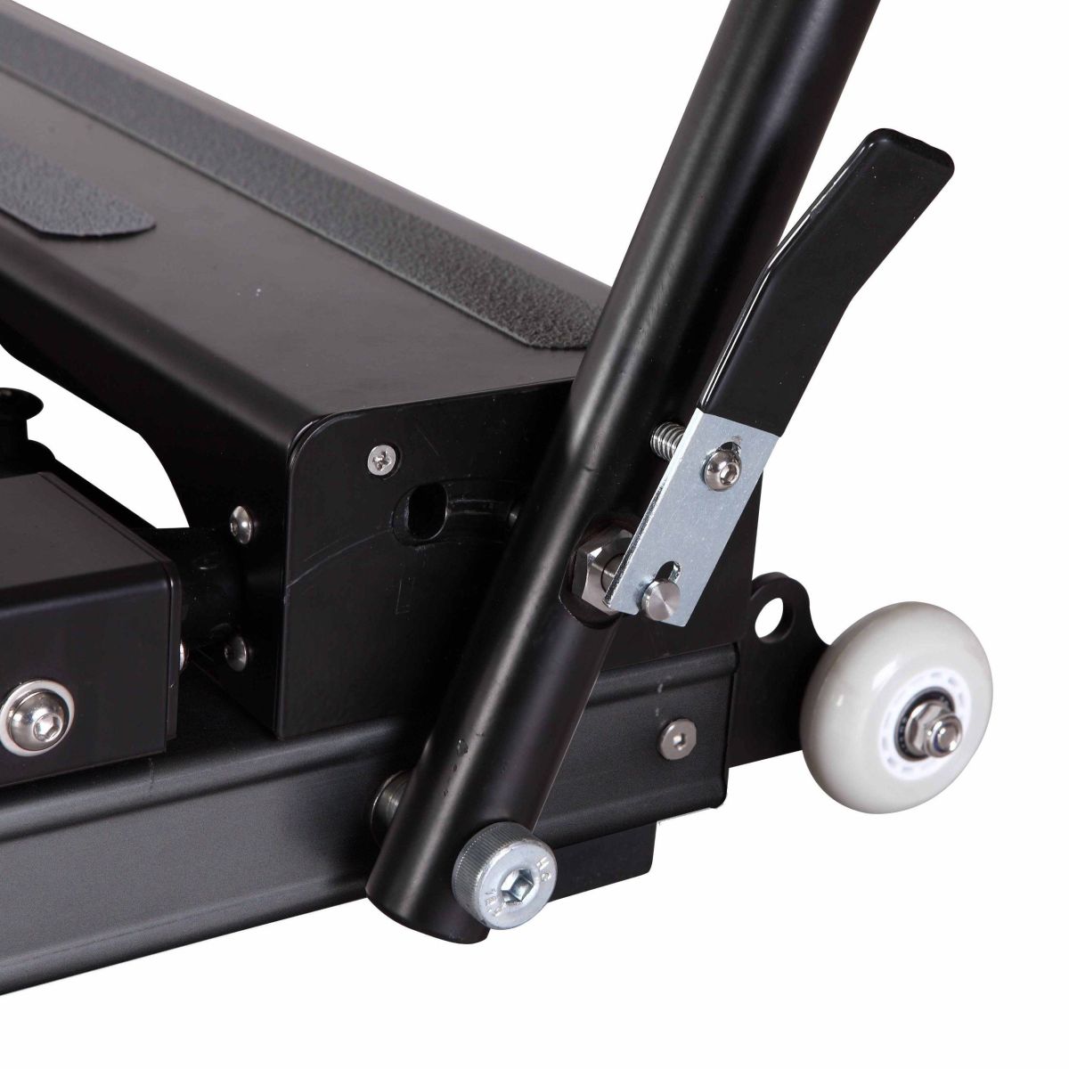 - Padded, non-slip foot bar with a traditional system with 4 change positions + folding.