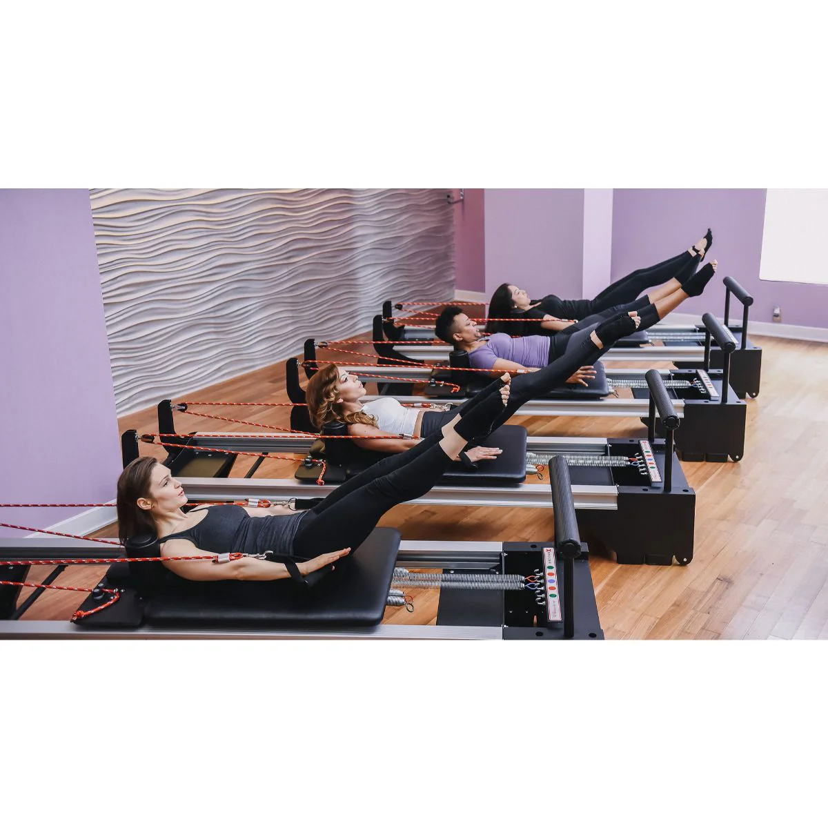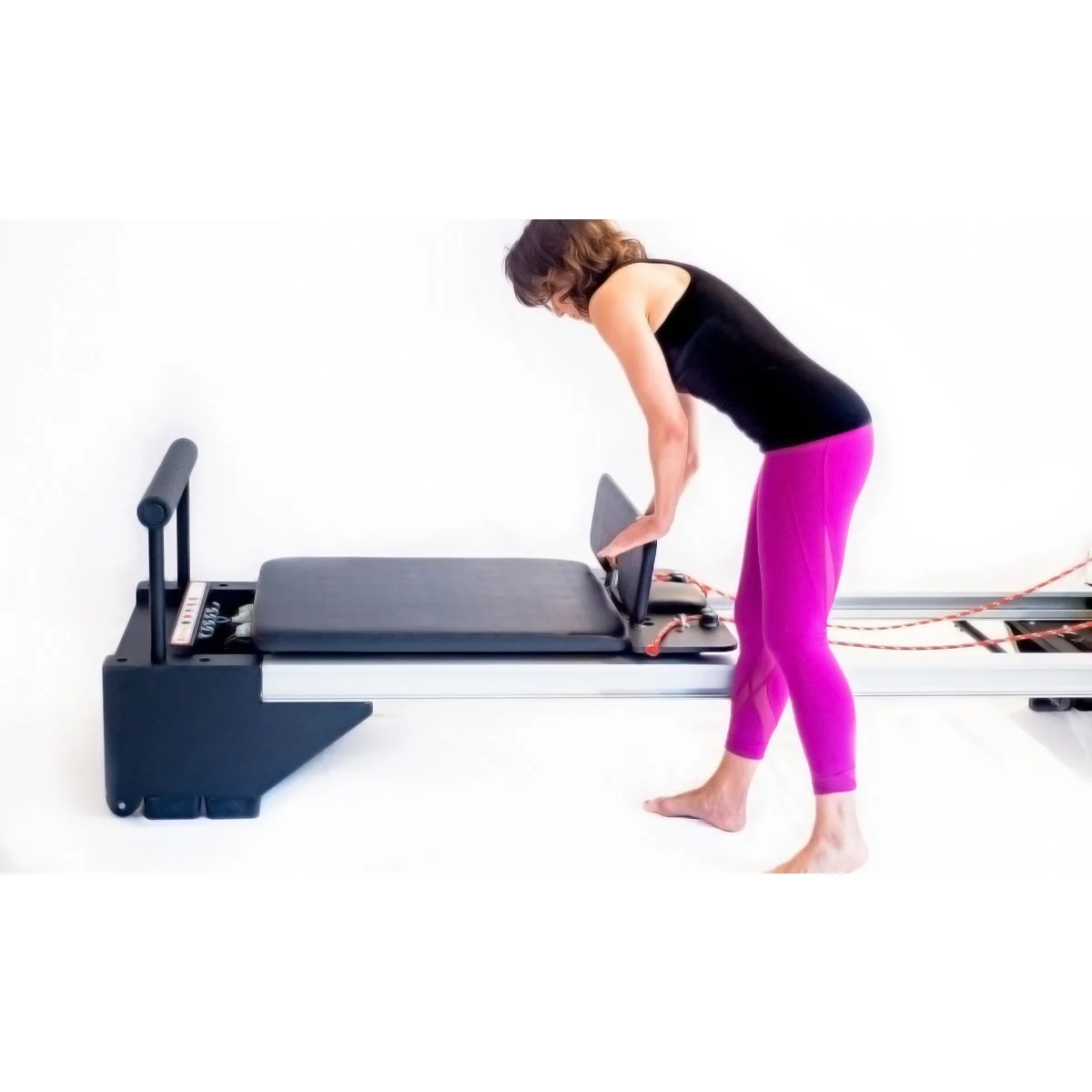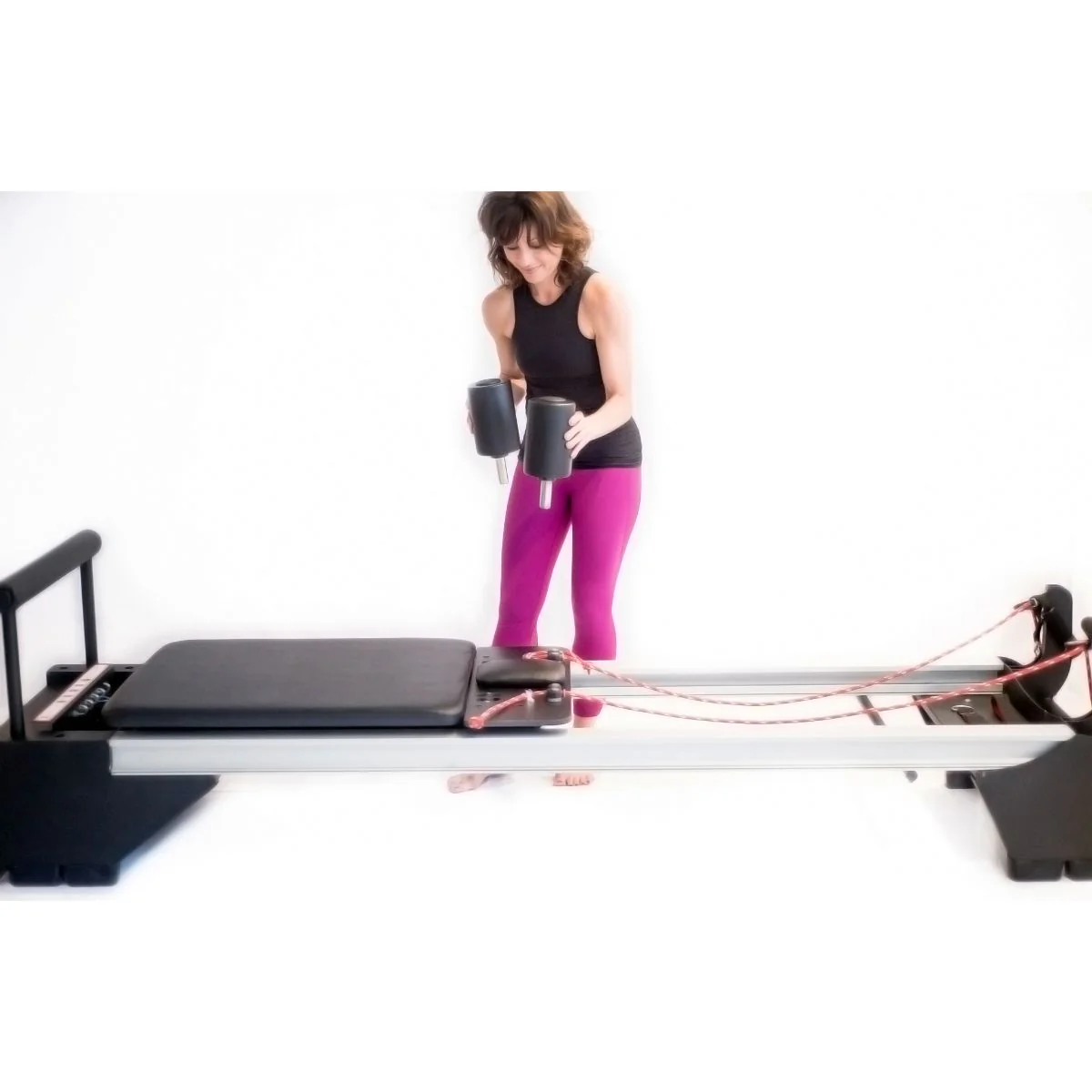 With its biomechanically sound surface, users on this im x reformer can explore both aerobic and plyometric exercise on the jump board, making it particularly recommended for athletes ranging from runners to basketball players to gymnasts to downhill skiers.