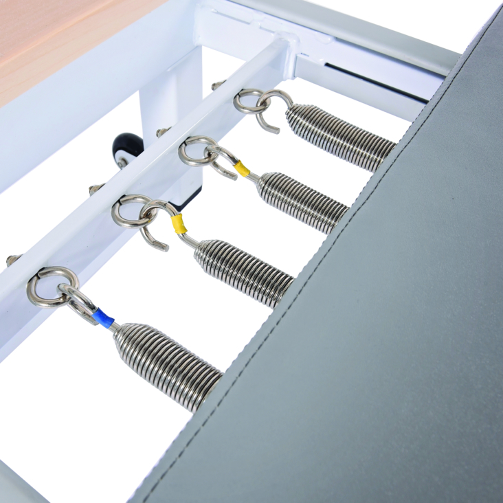 ‘Precision’ is an essential principle of AeroPilates. The Reformer 610 meets that standard by providing you with aluminum rails and ball-bearing rollers for smooth platform movement. The 610 features 4 levels of spring resistance (2 heavy and 2 light) for total of 8 possible combinations of difficulty. Heavier resistance engages the main muscle groups and lighter resistance activates the core. The 610 also includes a wall chart, and downloadable AeroPilates Primer and AeroPilates Basic Workout Package videos.